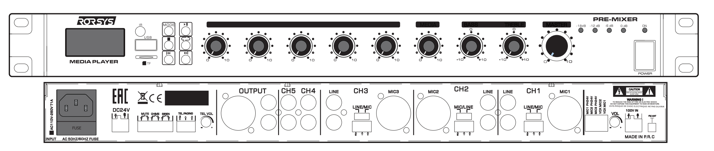 PRE-MIXER RORSYS Профессиональный микшер-предусилитель с медиаплеером