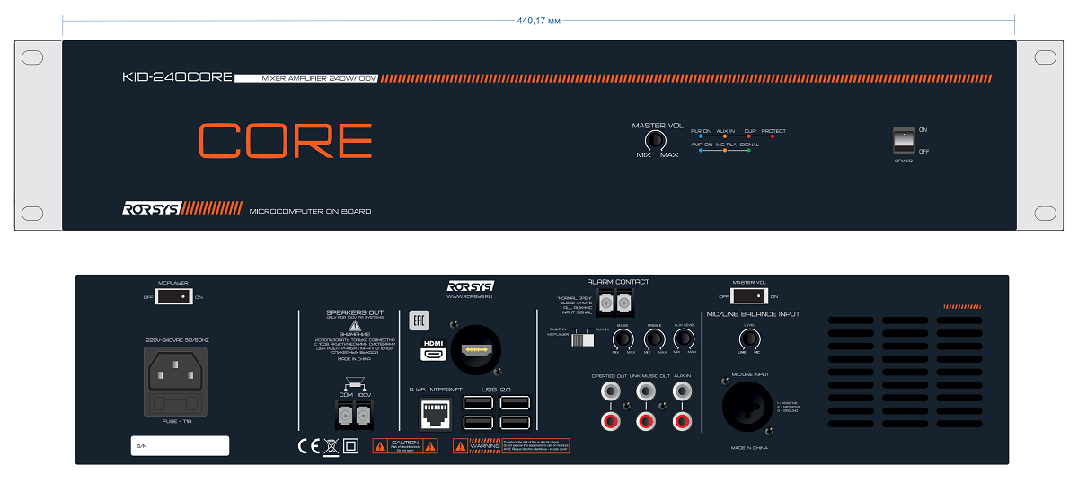 KID-240CORE RORSYS Микшер-усилитель с микрокомпьютером 240Вт