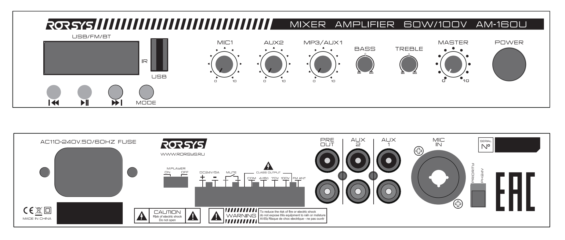 AM-160U RORSYS Цифровой микшер-усилитель с медиаплеером, 60 Вт