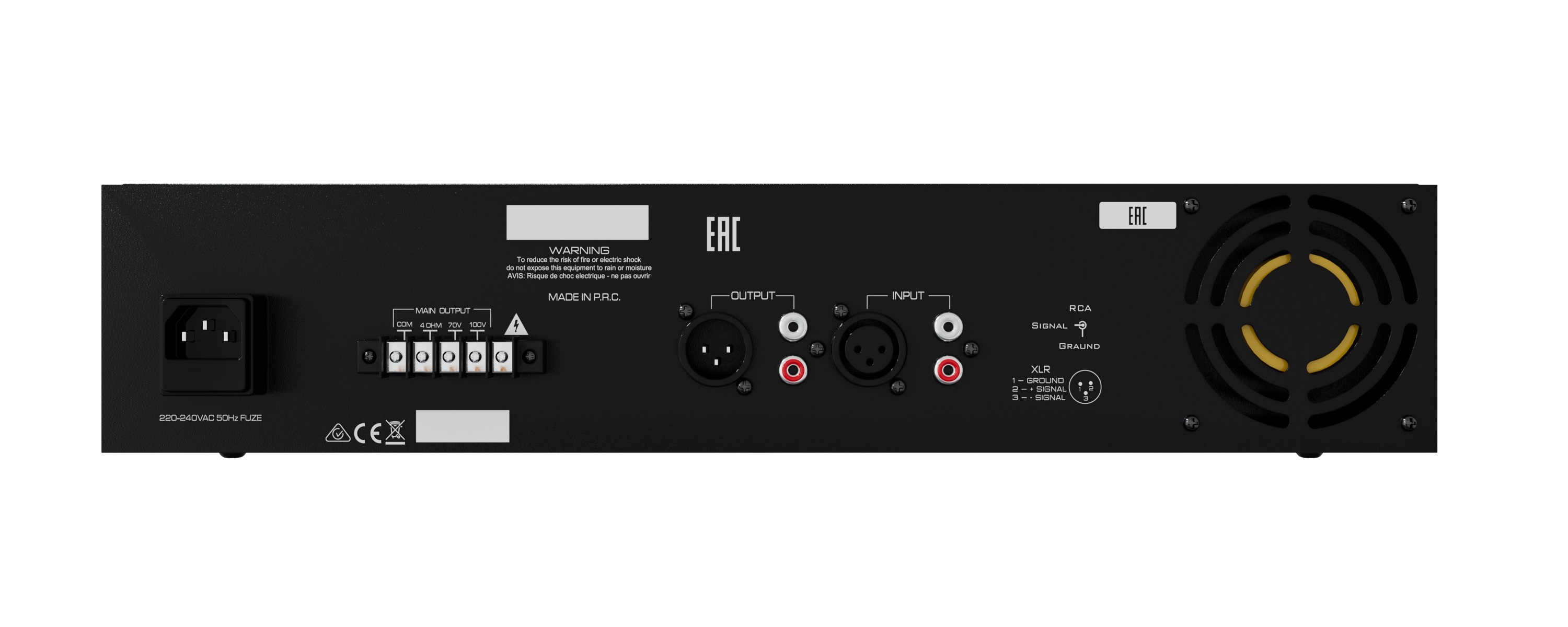 Одноканальный трансляционный усилитель. Выходная мощность 120 Вт, работает с низкоомной (4-16 Ом) и трансляционной (70/100В) акустикой. Частотный диапазон 80 - 20 000 Гц, соотношение сигнал/шум >75 дБ, гармонические искажения <0.5% (1 кГц, 100В, -3 дБ). Аудиовход для источника сигнала 1х XLR/RCA (балансный/небалансный); линейный аудиовыход 1х XLR/RCA (балансный/небалансный); аудиовыходы на акустику - блок винтовых клемм. Регулятор громкости. Защита от перегрева, перегрузки и КЗ, светодиодная индикация, активное интеллектуальное охлаждение. Габариты 485х88х340 мм, вес 11 кг. Монтаж настольный или в рэковую стойку (2U). Питание от сети ~220В, потребляемая мощность 240 Вт. Эксплуатация в помещениях.