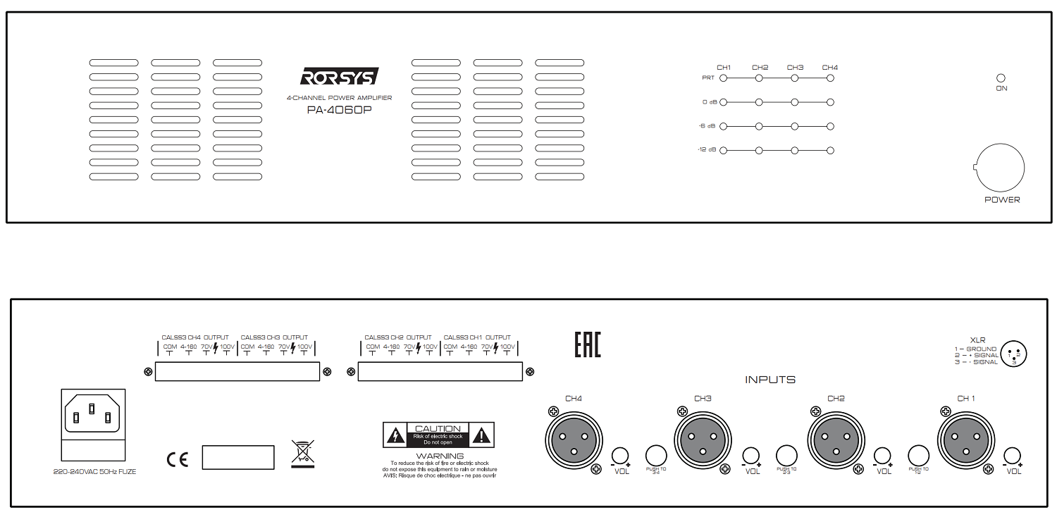 PA-4060P RORSYS Четырехканальный трансляционный усилитель, 4х 60Вт